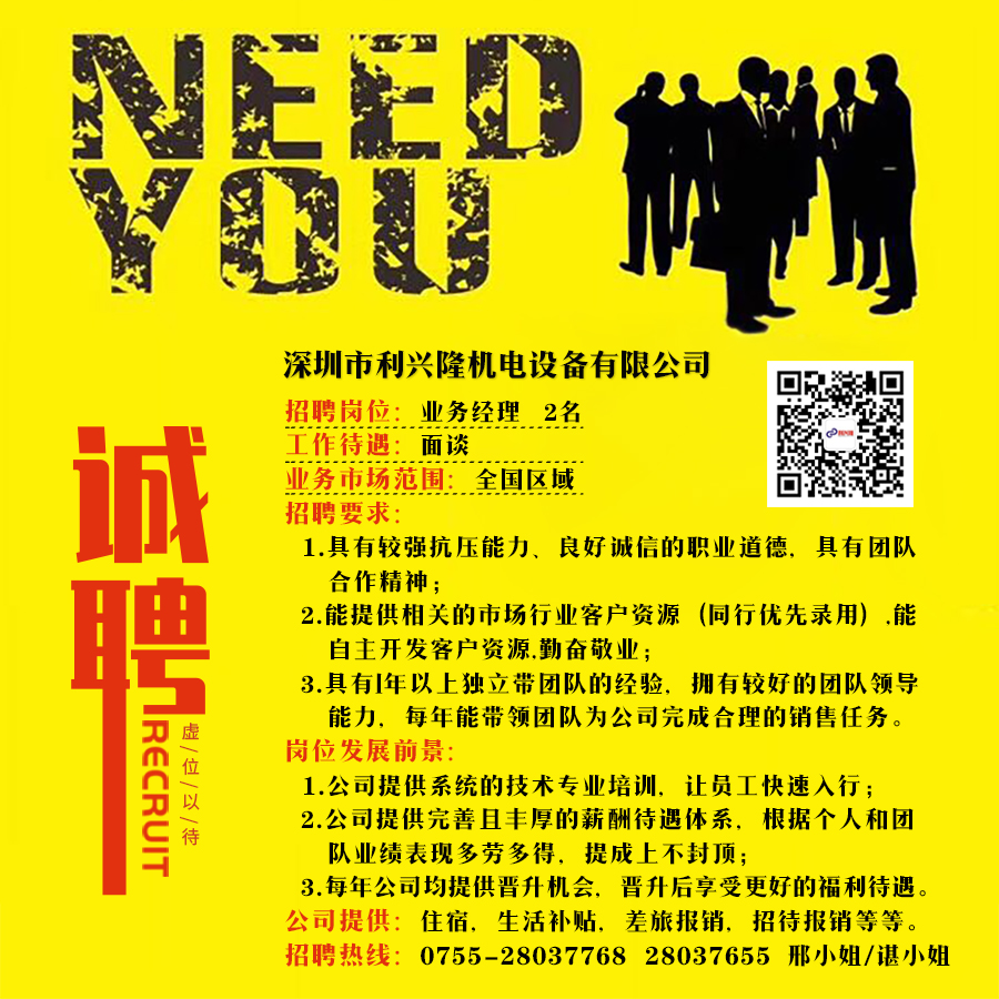 招聘通知|求賢若渴,虛位以待!深圳利興隆機(jī)電誠聘業(yè)務(wù)經(jīng)理/業(yè)務(wù)員,有才你就來!
